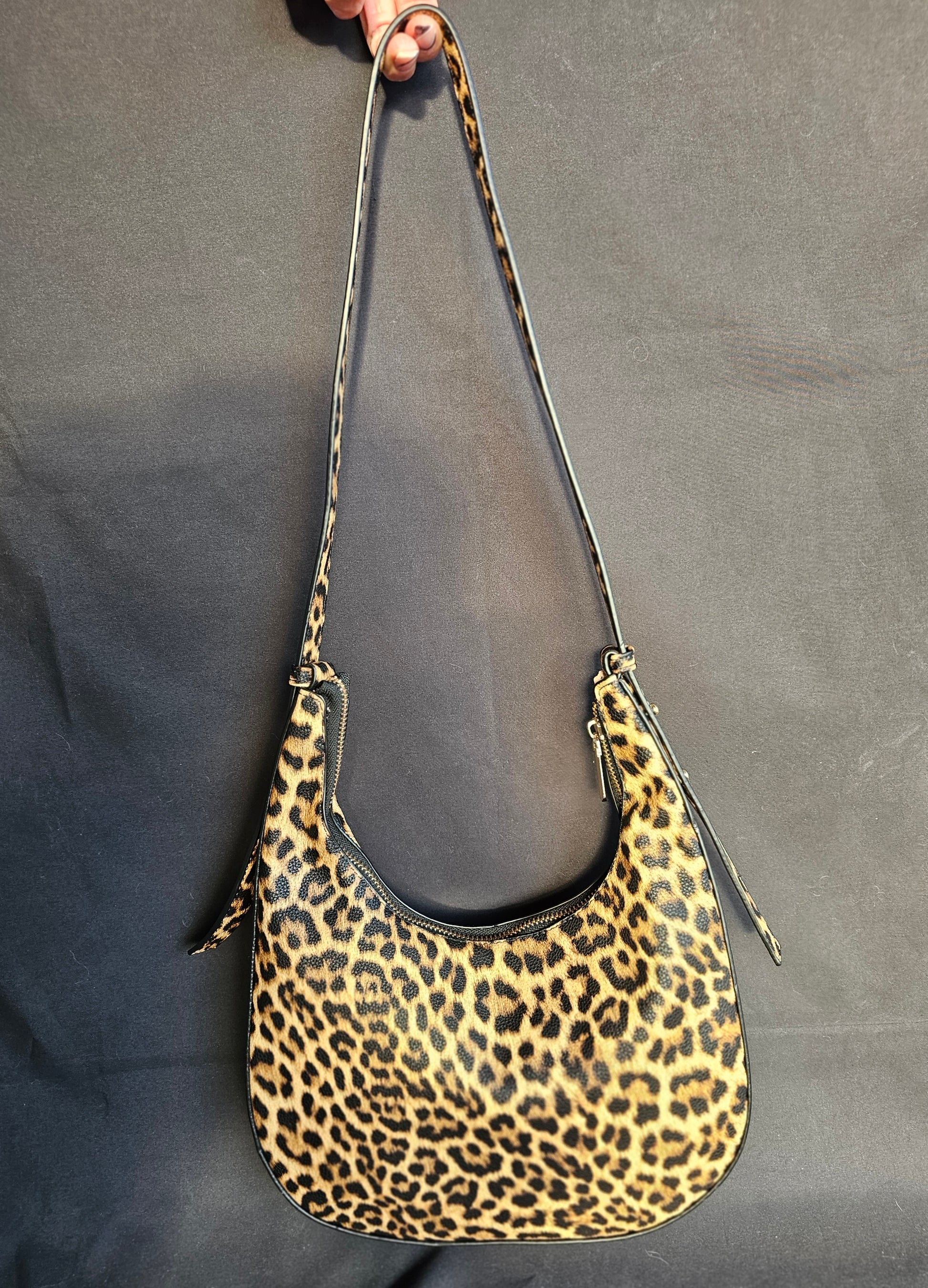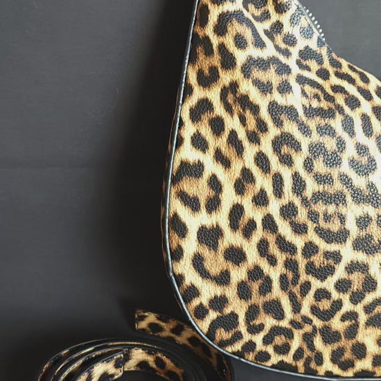 Borsa hobo maculata in similpelle con manico in metallo color oro. Presenza di una seconda tracolla regolabile e removibile. Singolo scomparto con cerniera.