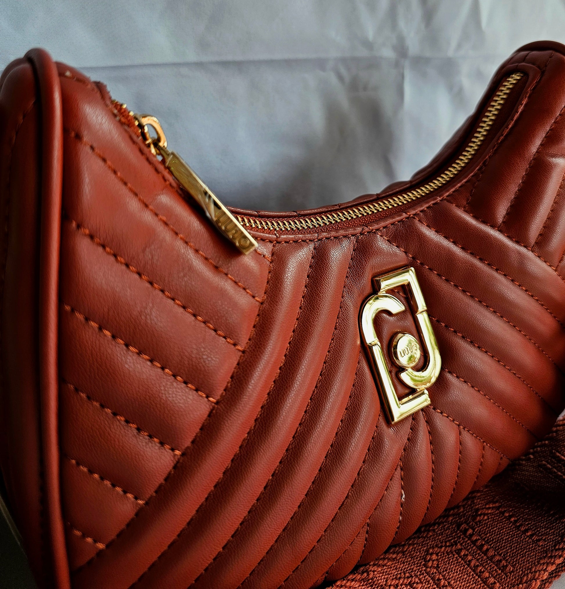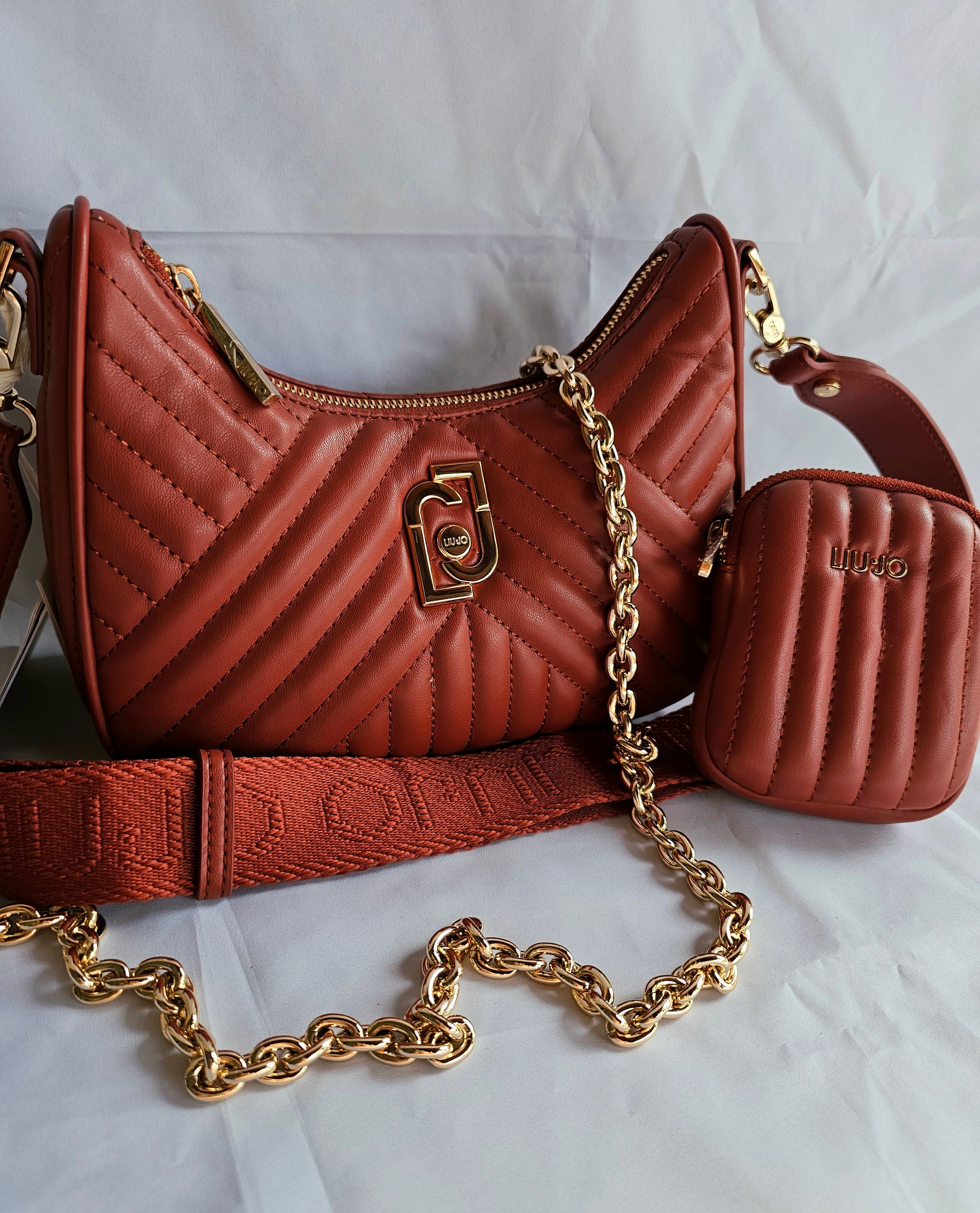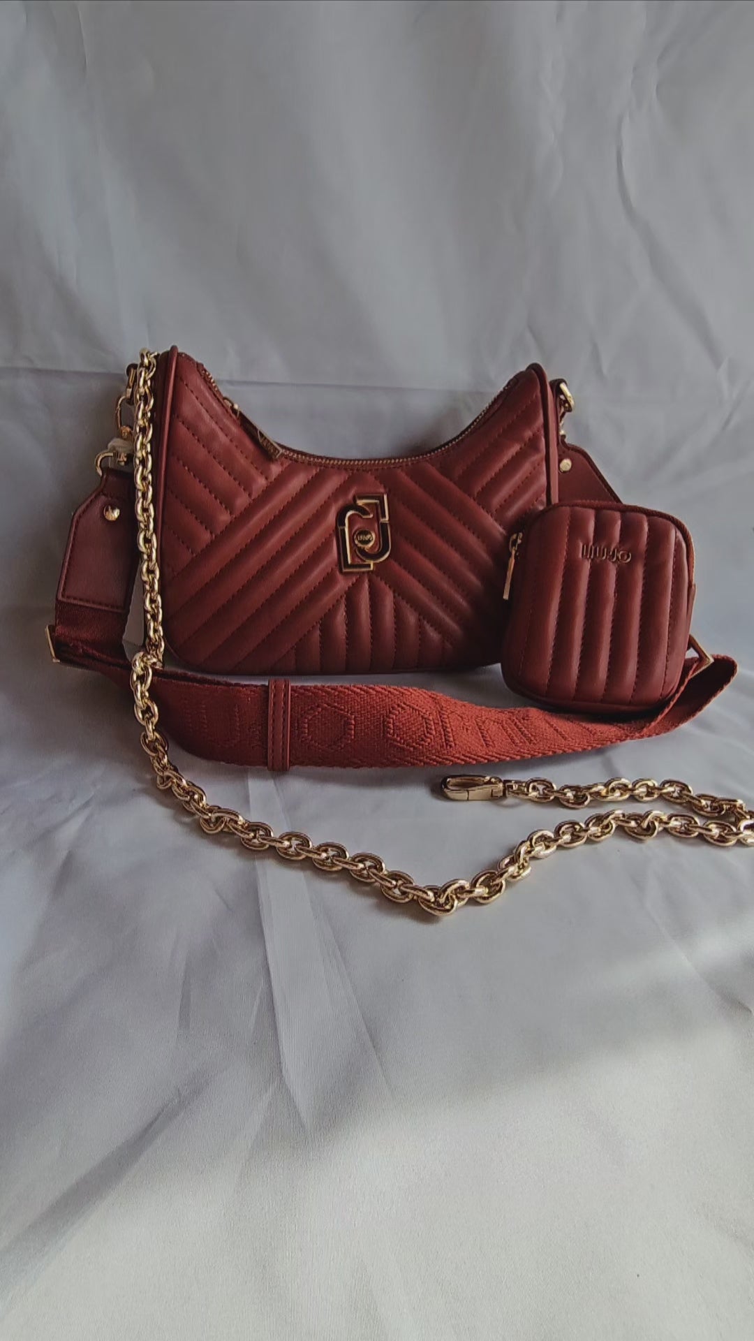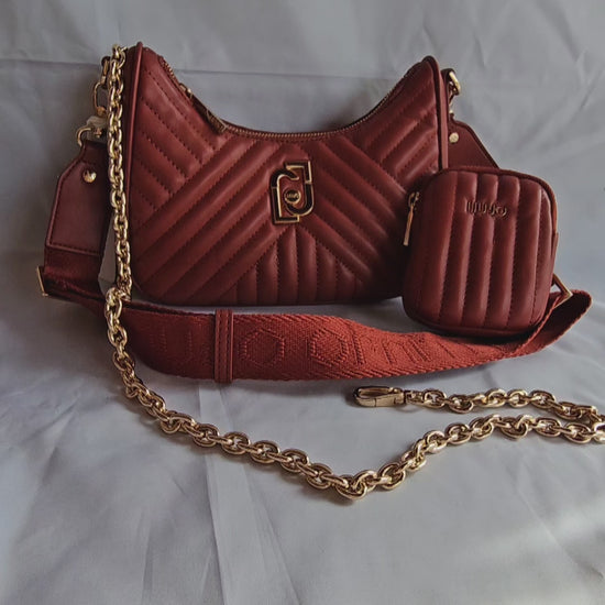 Spaziosa e versatile borsa ecosostenibile Deer Liu Jo a bandiera in semilpelle dal design a mezzaluna.