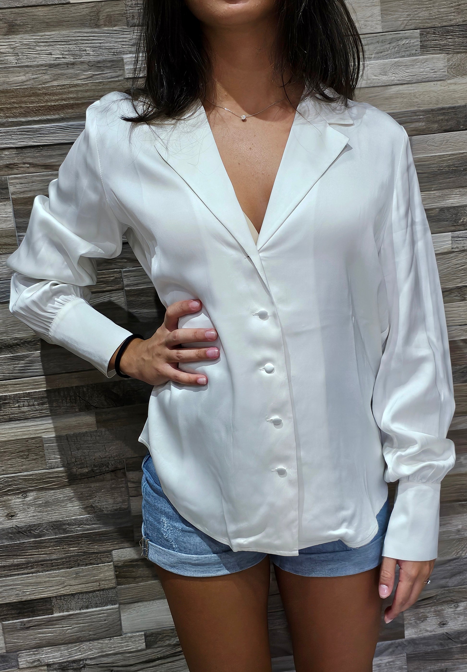 Camicia Twinset da donna color bianco ottico con manica lunga, chiusura con bottoni in raso, vestibilità regolare.
