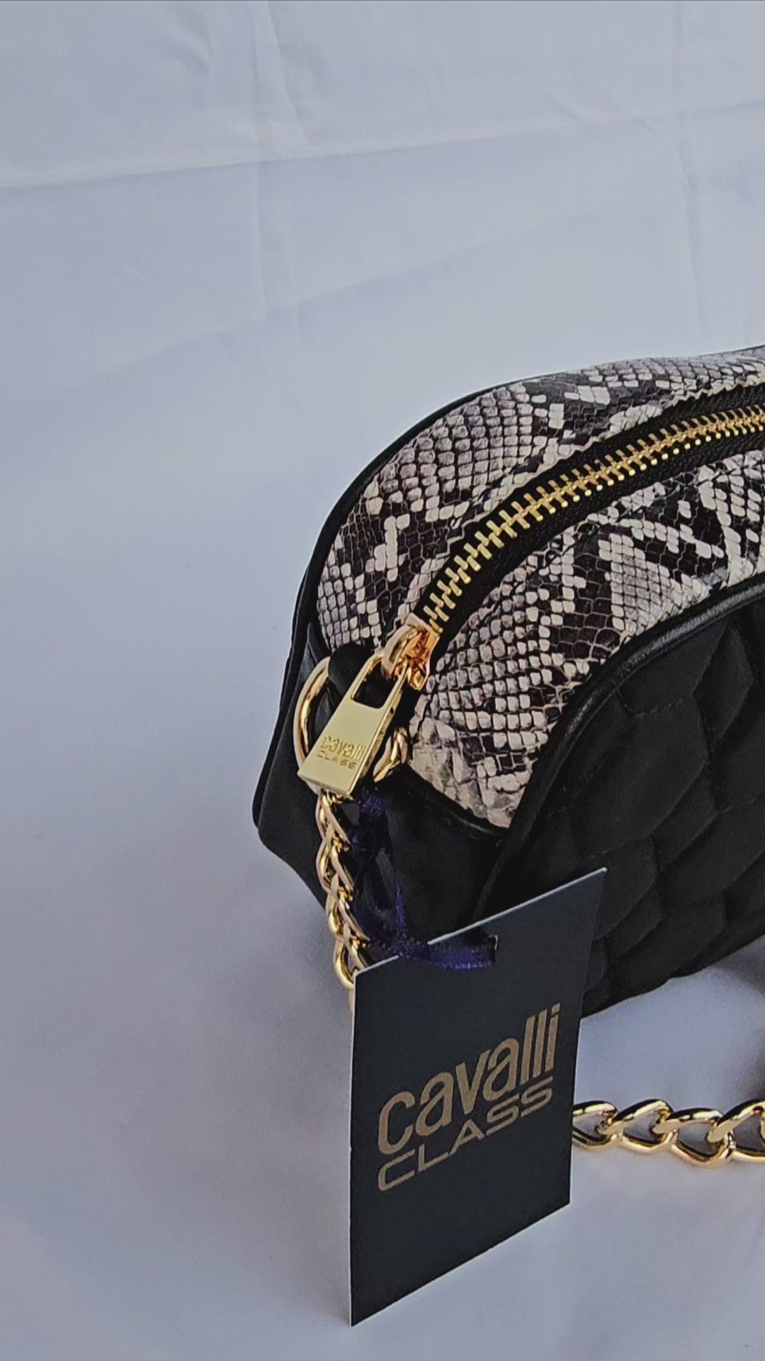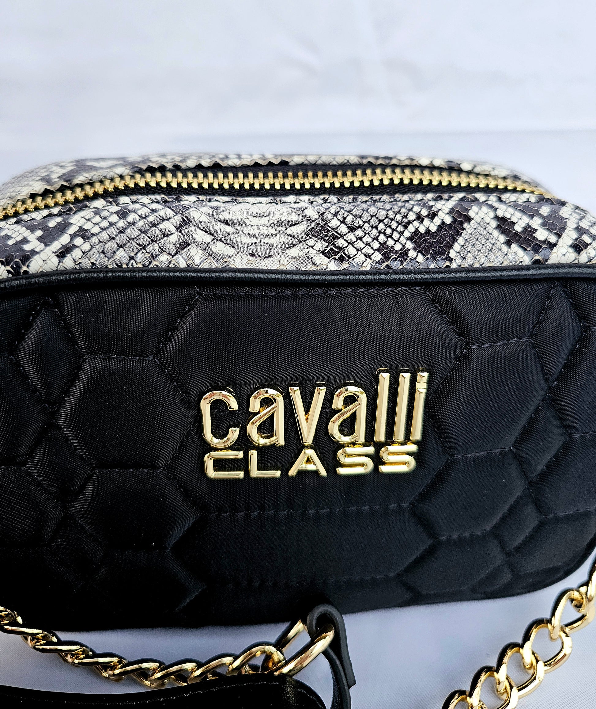 Borsa Cavalli Class di Roberto Cavalli nera con dettagli pitonati.