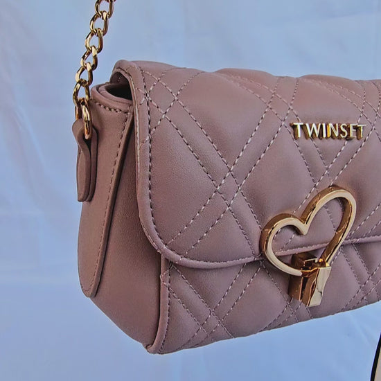 Borsa della Twinset a tracolla tinta unita rosa antico in ecopelle. Design elegante e raffinato, ideale per impreziosire i tuoi outfit